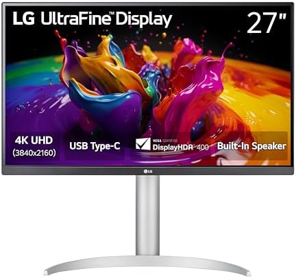 Model: LG 27UP850K-W 27-inch Ultrafine 4K UHD (3840 x 2160) IPS Computer Monitor, 60Hz, 5ms, DisplayHDR 400, Built-in Speaker, HDMI, DisplayPort, USB Type-C 90W PD, Tilt/Height/Pivot Adjustable Stand, White