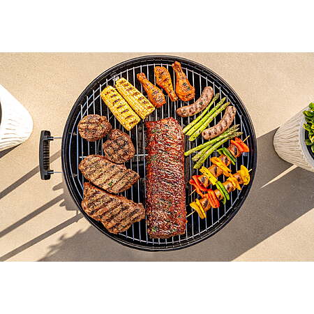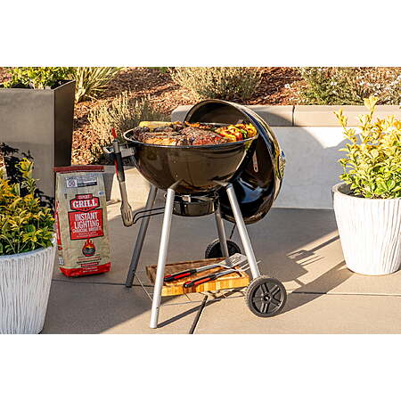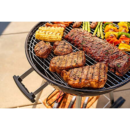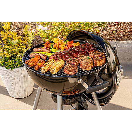 | Product Description: | Step up your grilling game with the Expert Grill 22.5” Kettle Charcoal Grill, the perfect outdoor cooking companion. Featuring a spacious 363 square inches of cooking space, this grill can handle up to 17 burgers at once, making it ideal for family gatherings or just a simple meal with friends. Designed for ease and convenience, the removable ash catcher ensures hassle-free cleanup, letting you spend more time enjoying your grill and less time maintaining it. The grill’s heat-safe handles allow you to move and adjust the lid with confidence, while the adjustable ventilator gives you complete control over your cooking temperature, allowing you to master everything from low-and-slow smoking to high-heat searing. With a built-in temperature gauge, you’ll always know when your grill is in the perfect heat zone. The convenient lid bracket lets you hang the lid on the side, keeping it out of the way while you tend to your food. The bottom storage rack provides a handy spot for tools, charcoal, or grilling accessories, ensuring everything you need is within reach. Built with durable steel construction and chrome-plated cooking grates, this grill is designed to withstand the elements and offer long-lasting performance. Plus, the two heavy-duty wheels make it easy to move your grill wherever the party is. Whether you’re a weekend warrior or a seasoned grill master, the Expert Grill 22.5” Kettle Charcoal Grill is your ticket to great flavor and memorable cookouts. 363 sq. in. of cooking space, fits up to 17 burgers, perfect for family cookouts. Removable ash catcher for easy, hassle-free cleanup after grilling. Heat-safe handles allow safe adjustments even during cooking. Adjustable ventilator offers precise control of heat and airflow. Built-in temperature gauge helps monitor heat levels for perfect results. Convenient lid bracket hangs the lid on the side for easy access while grilling. Bottom storage rack provides extra space for tools, charcoal, and accessories. Durable steel construction and chrome-plated grates ensure long-lasting performance Heavy-duty wheels make it easy to move your grill wherever you need it. Model Number: EX5504430716001 For questions, problems , missing parts? Before returning to your retailer, contact our customer service at (833) 908-2026 Sunday – Saturday, 7:00 a.m. – 9:00 p.m. CT |