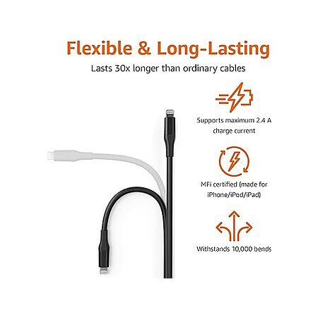 Amazon Basics 10FT USB-A to Lightning ABS MFi Certified Charging Cable $4