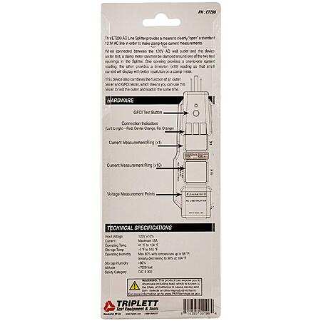 $12*:Triplett ET200 AC Line Splitter and GFCI Outlet/Receptacle Tester with 5 Visual Indicators