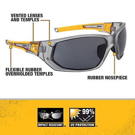 Amazon.com has DEWALT DPG112-2D Miter™ Premium Vented No-Slip Safety Glasses – Smoke Lens – Vented Frame & Lenses – Rubber Temples & Nosepiece – 1 Pair on sale for $7.5.
