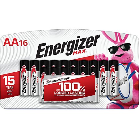 16-Count Energizer Energizer MAX AA Batteries for $11.39 - $3.42 when you 'clip' the coupon on the product page - 5% when you check out via Subscribe & Save =