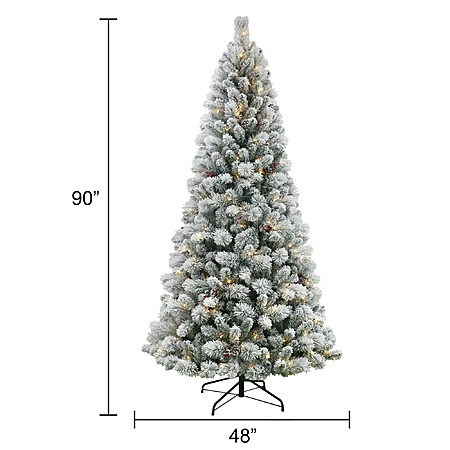 $45.06*:7.5 ft Pre-Lit Flocked Lakewood Spruce Artificial Christmas Tree, Green, 300 LED, by Holiday Time