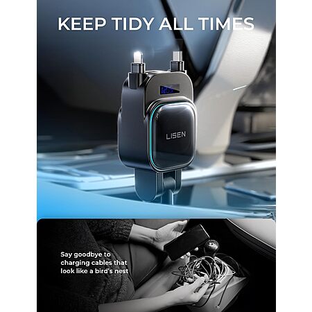 [AC] $13.29*: LISEN 4-in-1 up to 96W Car Charge w/ Retractable USB C Cable at Amazon