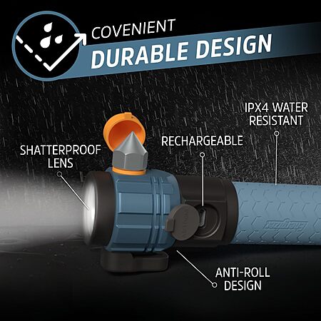 • Durable: Aircraft-grade aluminum metal flashlight is IPX4 water-resistant, impact-resistant up to 3 feet, and has a shatterproof lens