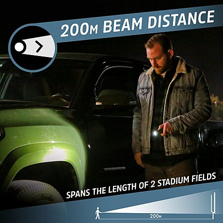 • Bright LED Light: Bright flashlight throws off 500 lumens and spans the length of 2 stadium fields
