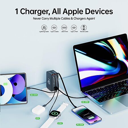 FlexTurtle 5-in-1 Retractable Charger w/ Apple Watch Charger, 35W USB-C & 12W Lighting Cables (Grey) $18.19 + Free Shipping w/ Prime or on $35+