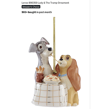 Disney lovers will adore this sweet ornament featuring the iconic Lady and the Tramp sharing spaghetti—just like the classic film! This hand-painted ornament is crafted of ivory porcelain and features 24-karat gold accents for a pristine finish.