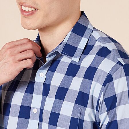 Amazon Essentials Men's Regular-Fit Short-Sleeve Poplin Shirt, Blue Buffalo Check, Large $8