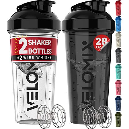 VELOMIX -2 Pack- 28 oz Protein Shaker Bottles for Protein Mixes $9.99