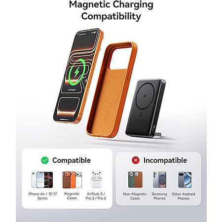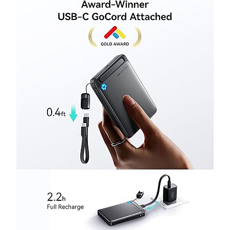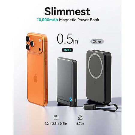 INIU for Magsafe Power Bank, Slimmest 10000mAh Qi2 Certified 15W, Fast Charging 45W, Built-in USB-C Cable $30.59