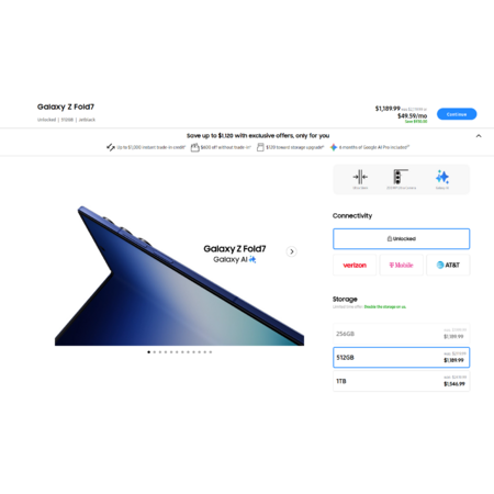 SAMSUNG EDU/EPP Galaxy Z Fold7 512 GB @1189.99 same price as 128 GB $1189.99