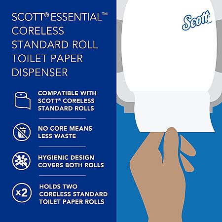 Scott Professional Coreless Standard Roll Toilet Paper Dispenser (Dual Capacity, White, 11.0"x7.63"x6.0") $4.45 + Free Shipping w/ Prime or on $35+