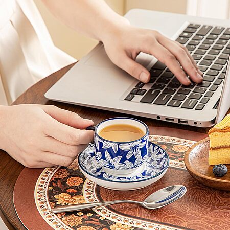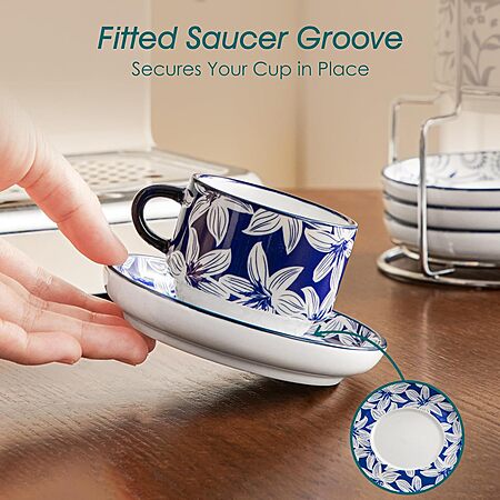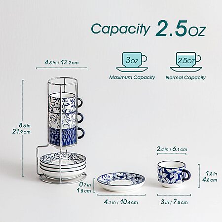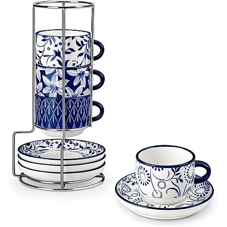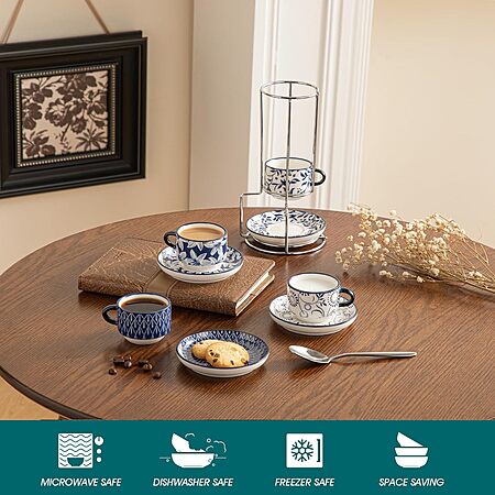 4-Pack vancasso, 2.5OZ Espresso Cups Stackable with Saucers & Metal Stand (Vintage Blue) $15.39 + Free Shipping w/ Prime or on $35+