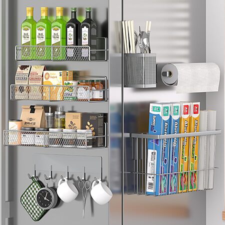 7-Pack Magnetic Spice Rack for Refrigerator w/ Paper Towel Holder, Hook Rack, Utensil Caddy & Cutting Board Holder (Grey) $20.63 + Free Shipping w/ Prime or on $35+