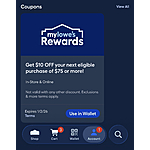This one-time use promotional coupon ("Coupon") is valid for $10 off when you spend $75 or more. Must ask cashier to apply discount (barcode) at time of purchase. Online: Discount applied proportionately to all eligible items but, discount for each eligible item can't exceed selling price (Max Discount may not be reached depending on items purchased). Coupon cannot be used in conjunction with any ( i ) other promotion, discount, markdown, coupon, rebate or offer including any Lowe's volume or special discount programs (such as but not limited to, Contractor Pack, Buy in Bulk, Volume Savings Program ("VSP"), Military Discount, Employee Discount, Lowe's Price Promise, Special Value, New Lower Price, Was:Now, & credit discount offers); or (ii) associate discretion price adjustments Coupon has no implied warranties, is not redeemable for cash, is nontransferable and cannot be replaced if lost or stolen. Void if altered, defaced, copied, transferred, or sold (thru any online auction or otherwise). Limit one Coupon per household. Redeemable in-store, Lowes.com & on Lowe's App. Not valid on: any Lowe's branded website operated by 3rd party; previous sales; multiple transactions; purchase of services, installation, or extended protection plans; gift cards; or Weber, Kichler, or Miele products. Customer must pay applicable sales tax. Coupon can't be used to make payments on any charge or credit account. Cash Value: 1/100 cent. Valid in the U.S. only and expires on 01/02/2026. Lowe's reserves the right to withdraw the Coupon at any time for any reason.