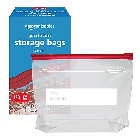 Amazon Basics Slider Quart Food Storage Bags, BPA Free, 120 Count (Previously Solimo) on sale for