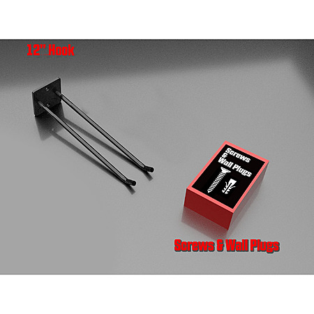 Model: PeerBasics, Metal 12” Wall Mount Straight Hook, 95lb Capacity, Black