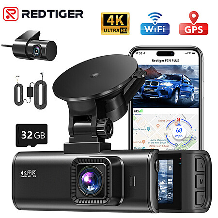Cert Refurb - REDTIGER F7NP 4K Starvis 2 Dual Dash Camera Front & Rear w/ Hardwire Kit & 32GB SD $60.79 + Free Shipping