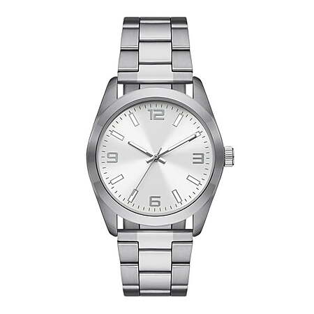 George Men's Watches: Silver Tone Case, Silver Dial, Silver Tone or Silvertone Metal Bracelet Watch with Black Easy Read Faux Chronograph Dial.$7, Walmart