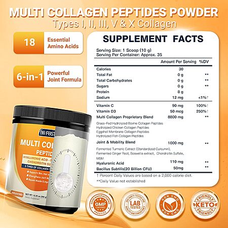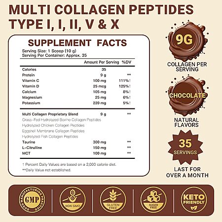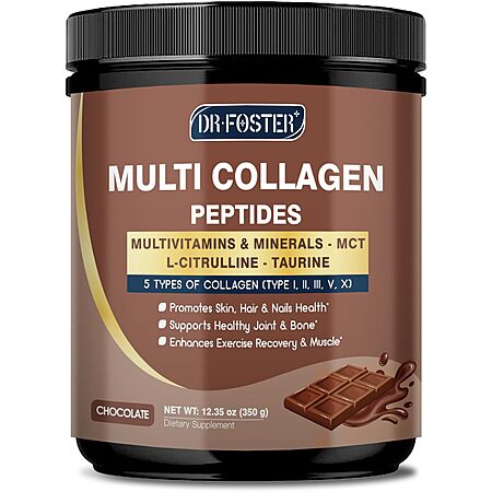Prime Members: 12.35-Oz DrFoster Multi-Type Collagen Peptides Powder (Type I, II, III, V, X, 35 Servings, Chocolate) $5.19 w/ S&S & More + Free Shipping