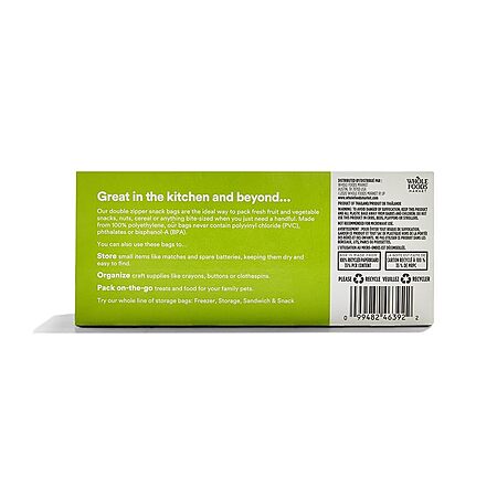 50-Count 365 by Whole Foods Market Snack Size Storage Bags $1.69 w/ S&S + Free Shipping w/ Prime or on $35+