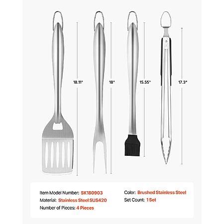 Model: VEVOR 4PCS Grilling Tool Set BBQ Grill Accessories Stainless Steel Barbecue Utensil