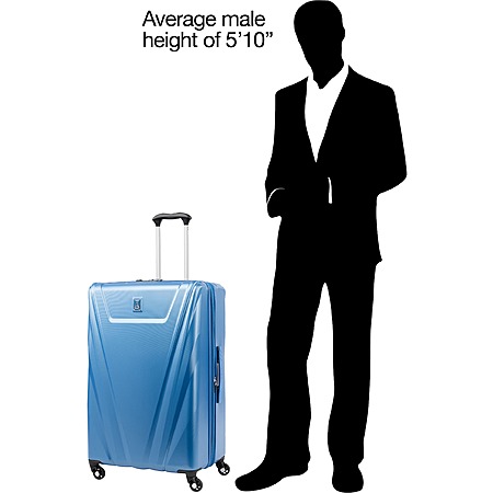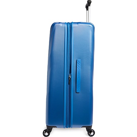 Exterior features: Water-resistant polycarbonate material with a textured surface ensures lightweight durability and protection. A telescoping handle maximizes comfort and control for users of different heights. Four double-wheel spinners glide effortlessly to navigate through busy airports.