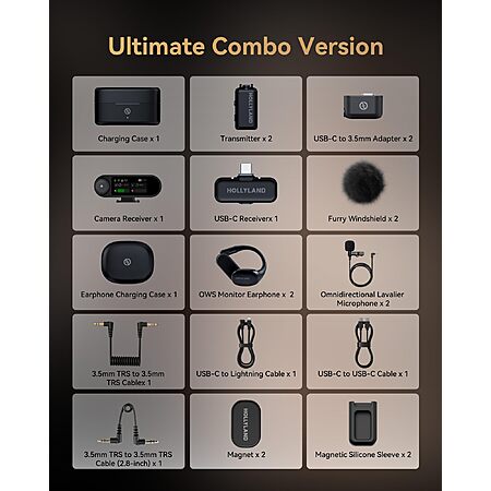 Hollyland Lark MAX 2 Wireless Microphone with Wireless Monitoring, 32bit Full-Chain Audio (Ultimate Combo, 2TX+2RX+OWS Earphones + Charging Case) for $223