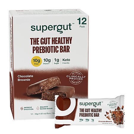 Supergut GLP-1 Boosting Prebiotic Bars, Chocolate Brownie - Gut Healthy Protein Snacks & Breakfast Bars - Keto-Friendly Meal Replacement Energy Bars (12 Count) on sale for