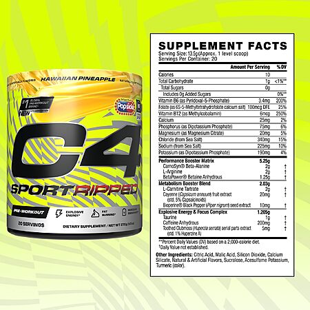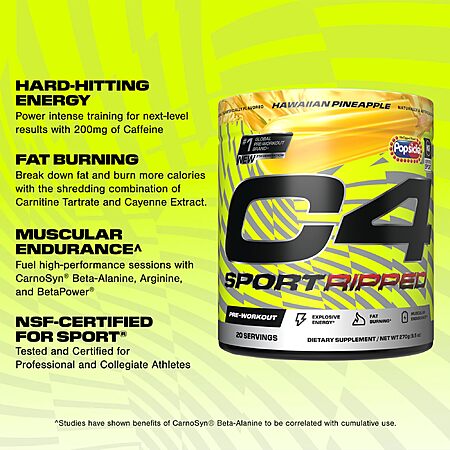 Model: Cellucor C4 Sport Ripped Pre-Workout Powder, Popsicle® Hawaiian Pineapple, 20 Servings