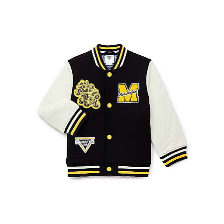 Classic Design: Features a flat collar, button front closure, and long sleeves, designed to resemble a traditional letterman jacket with a stylish varsity trim.