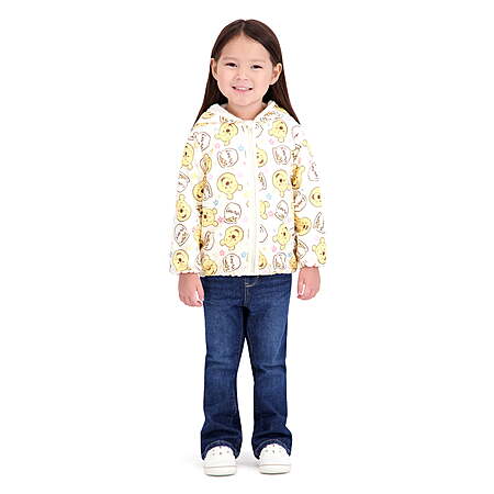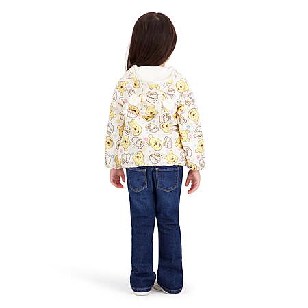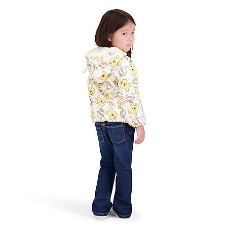 | Product Description: | Disney Winnie The Pooh toddler girl long sleeve zip-up hooded mid-weight jacket – Style, Comfort and Magic Combined! Let your child embrace the magic of Disney with this adorable zip-up hooded jacket featuring vibrant all over prints of Winnie The Pooh. Crafted from high-quality, breathable pongee fabrication, this jacket offers all-day comfort—whether it’s for playtime, school, or outdoor fun! The full front zipper ensures easy wardrobe changes while the cozy sherpa lined body and hood adds warmth on cooler days. Machine washable for everyday convenience, this jacket combines comfort and durability. The perfect gift for birthdays, holidays, or just because. Available in sizes 12M, 18M, 2T, 3T, 4T, 5T. Officially Licensed Disney Winnie The Pooh Apparel Easy Care: Machine washable for hassle-free cleaning, keeping it looking fresh and vibrant for everyday use. Perfect for back to school, birthday gift, Christmas holiday gift, cool weather, every day wear and outdoor play |
