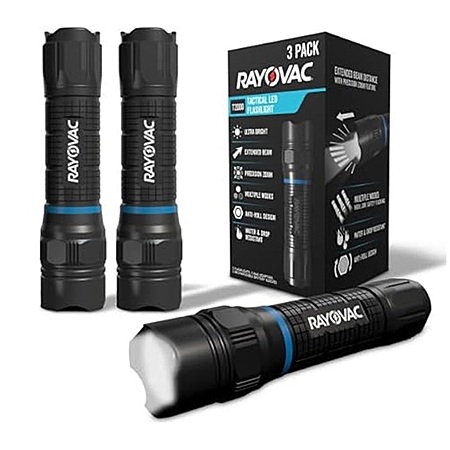 3 Pack Energizer Rayovac T2000 Tactical LED Flashlights, 400 Lumens $18.99 +FS w/Prime