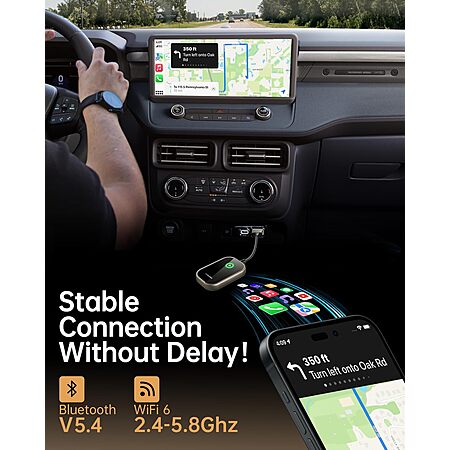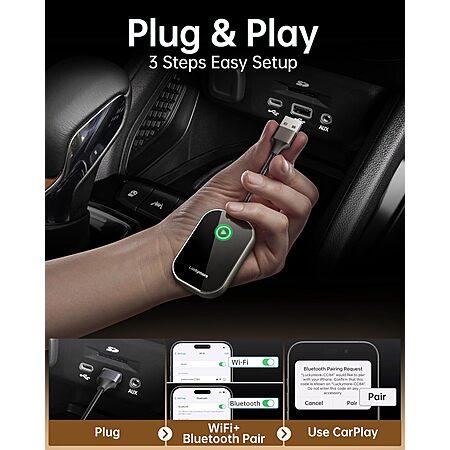 Luckymore Wireless Carplay Adapter, Converts Wired to Wireless Carplay Dongle for Wireless Control Plug & Play Carplay Fit for $5.99