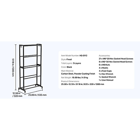 • Easy assembly: Includes all bolts and wrenches; no extra tools needed