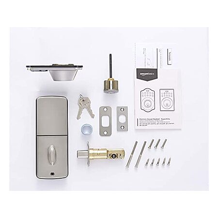 $30*:Amazon Basics Traditional Electronic Keypad Deadbolt Door Lock, Keyed Entry, Satin Nickel
