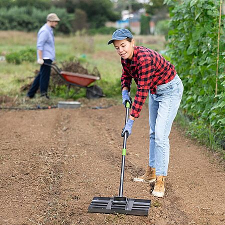 - Heavy-Duty and Rust-Resistant Build: Crafted from premium stainless steel with a rust-proof finish, this leveling rake is sturdy, corrosion-resistant, and built to withstand long-term outdoor use