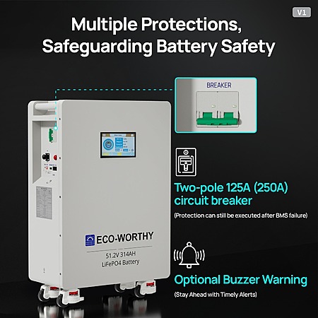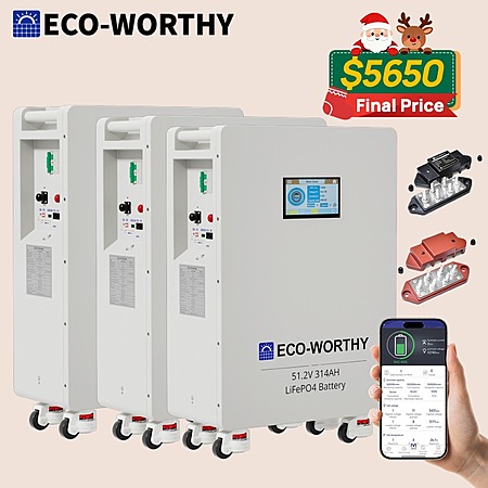 3-Pack ECO-WORTHY 48kWh 51.2V 314AH Wi-Fi & Bluetooth LiFePO4 Battery Backup w/ 200A BMS on sale for $5749.99 - $350 with coupon code