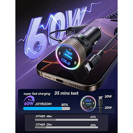 JOYROOM Bluetooth 5.4 FM 60W PD 3.0 Transmitter Car Adapter $4.79 @ Amazon