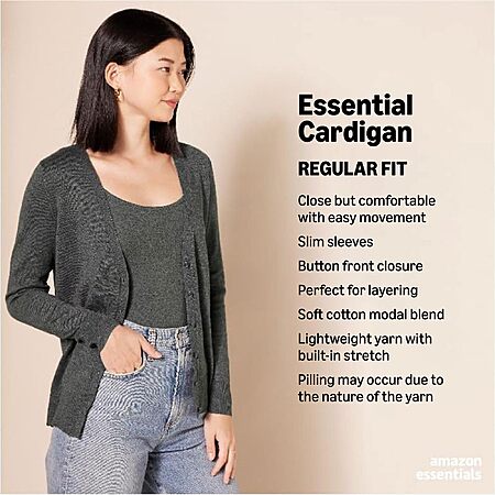 $6.76 Amazon Essentials Women's V-Neck Cardigan Sweater (Pale Peach)