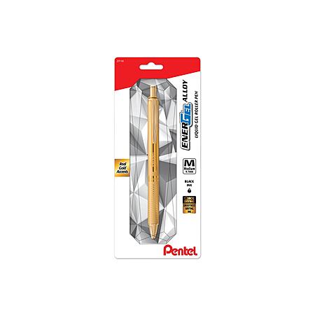 Pentel® EnerGel® Alloy Retractable Gel Pen, Medium Point, 0.7 mm, Gold Aluminum Barrel, Black Ink