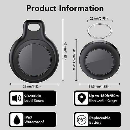2-Pack Bluetooth Tracker-Tag for Apple Find My (iOS Only, White & Black) $9.98 + Free Shipping w/ Prime or on $35+