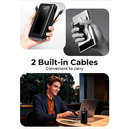 Portable Charger, 50,000mAh Power Bank with Built-in Cables, PD 22.5W Fast Charging with Flashlight, High-Capacity Portable Phone Charger for iPhone, Android $34.99