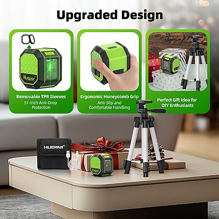Laser Level with Tripod, HUEPAR 100Ft Self Leveling Laser Level Rechargeable Green Cross Line Laser Leveler Tool for Picture Hanging, Tile, Home Renovation, Carrying Bag $25.06