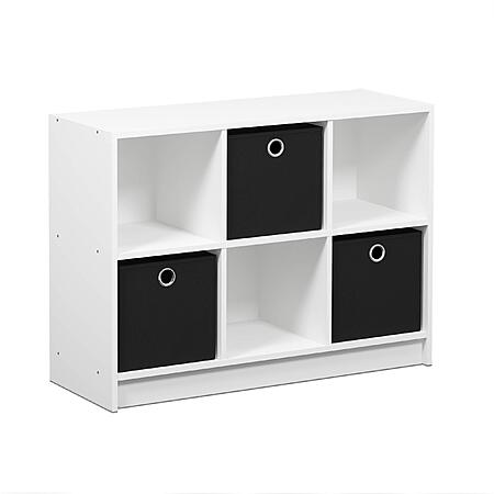 Furinno Basic 6-Cube Storage Organizer Bookcase w/ Bins (White / Black, 99940WH/BK) for