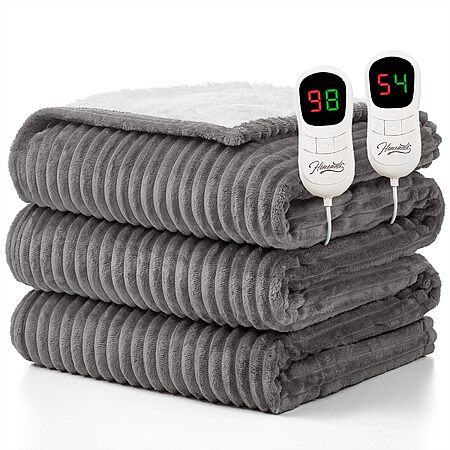 Homemate Electric Heated Blanket Queen Size - 84"x90" Heating Blanket Queen Size Dual Control 1/2/4/6/8 Hours Auto-Off 10 Heat Level Over-Heat Protection Soft Flannel $49.99