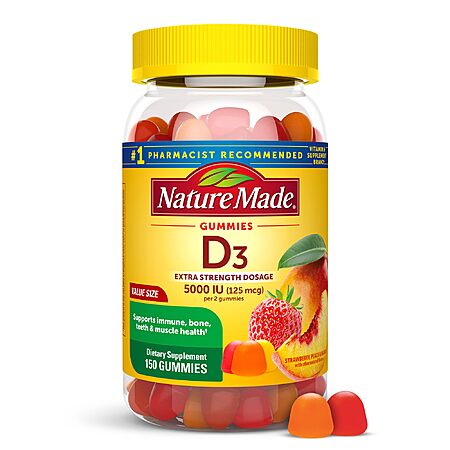 Model: Nature Made Vitamin D3 5000 IU Per Serving Gummies Extra Strength, Bone and Immune Health Support, 150 Vitamin D Gummies for Adults, 75 Day Supply