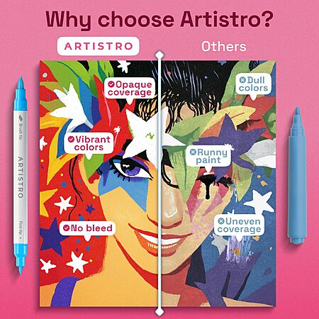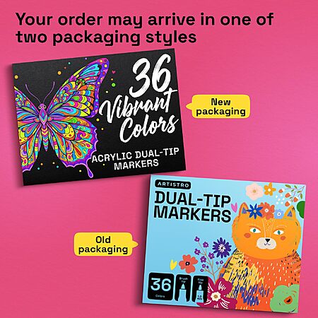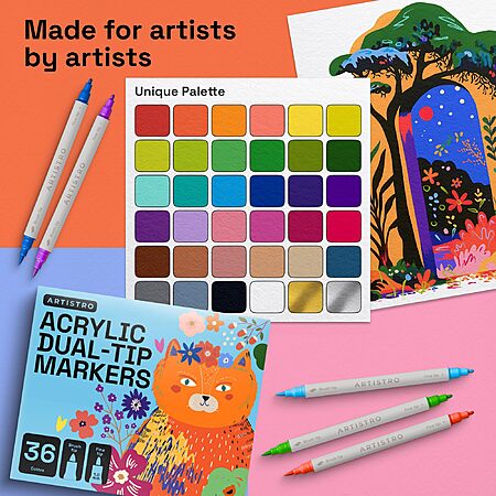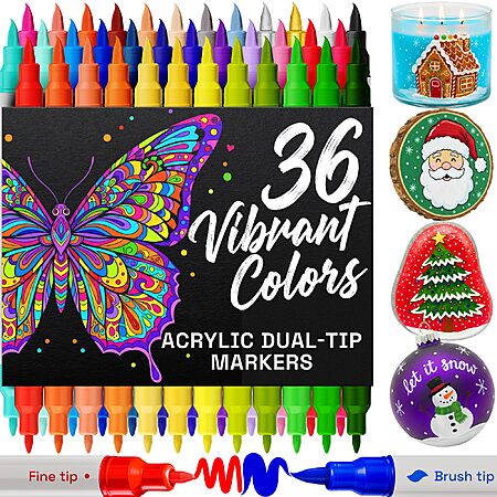 ARTISTRO 36 Acrylic Paint Markers - Paint Pens Dual Tip Brush + Fine Ideal for Calligraphy - Perfect for Fabric, Rock, Glass, Wood, DIY - Art Supplies $9.49