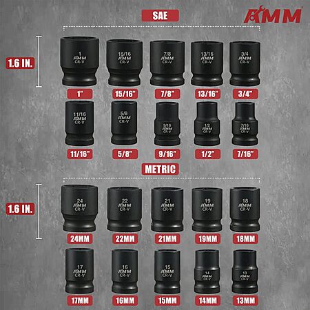 AMM 1/2" Drive Master Impact Socket Set, 24-Piece Shallow Standard SAE (7/16-Inch to 1-Inch) & Metric (13-24 mm) Sizes, Socket Assortment with Ratchet Handle,Cr-V Steel $27.29